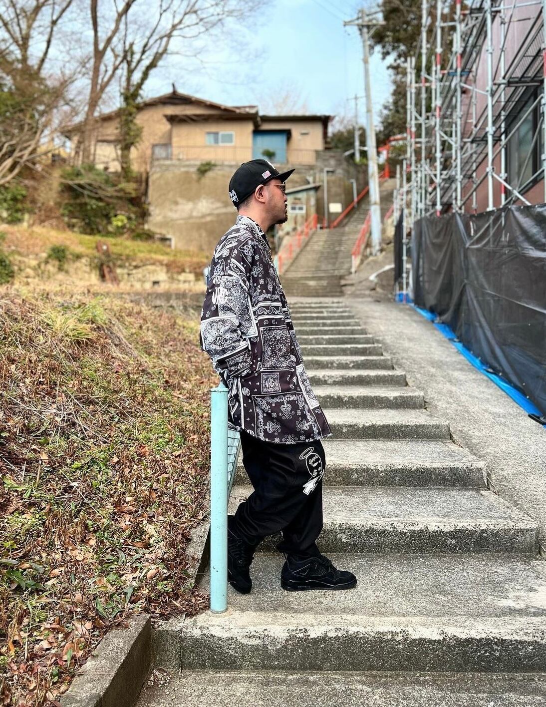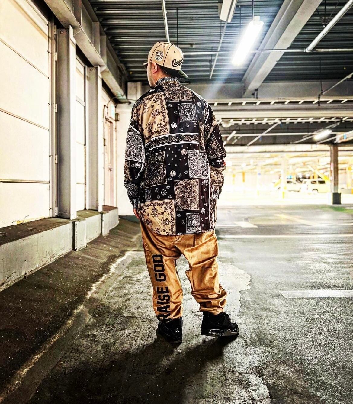 オリジナルのペイズリーバンダナ柄のロングシャツ。