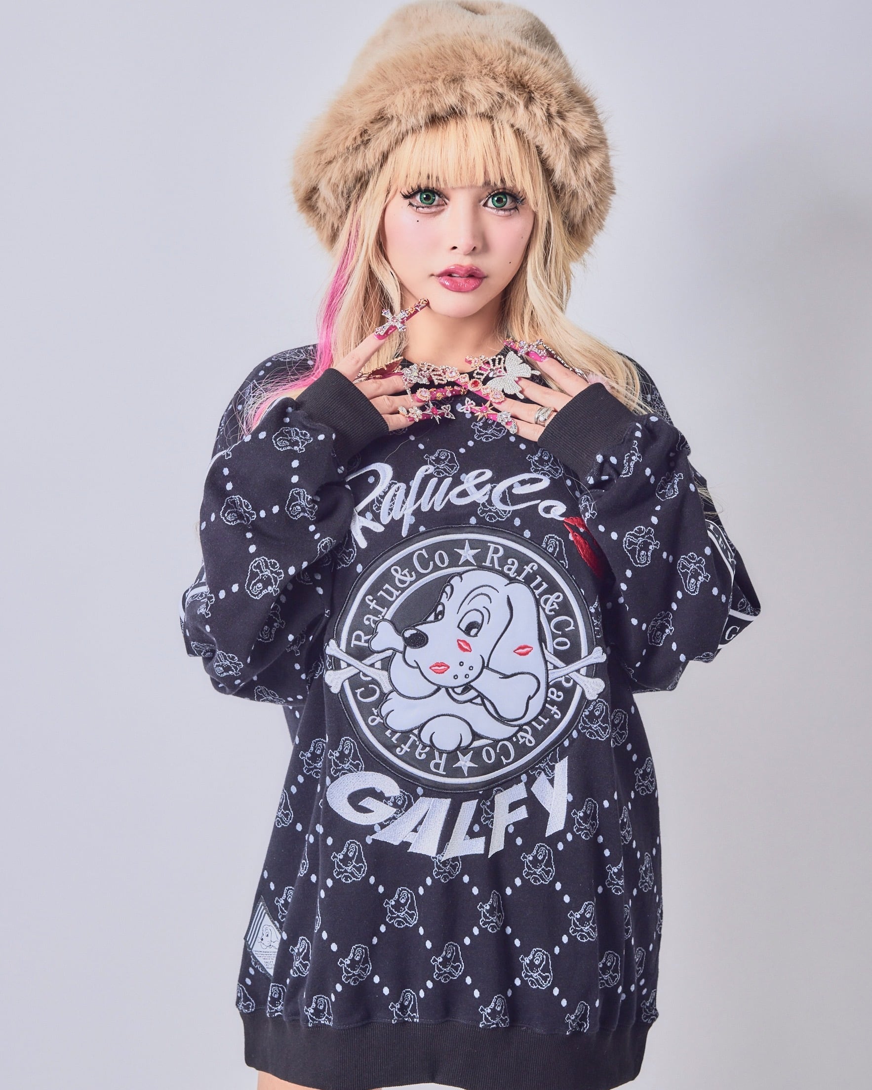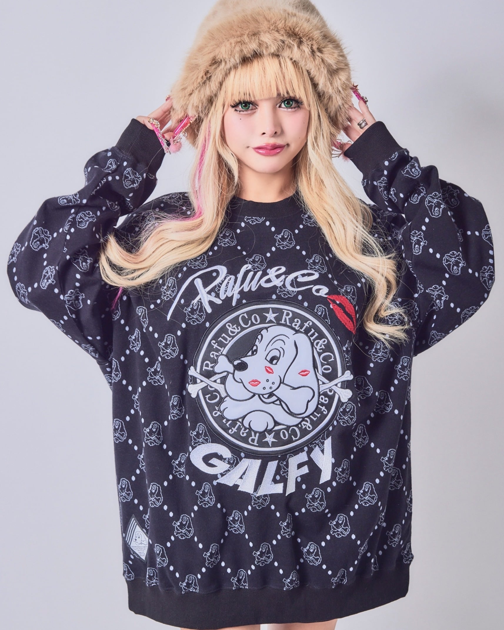 GALFY×Rafu&Co Chu-ChuモノグラムロンTスウェット【Black】